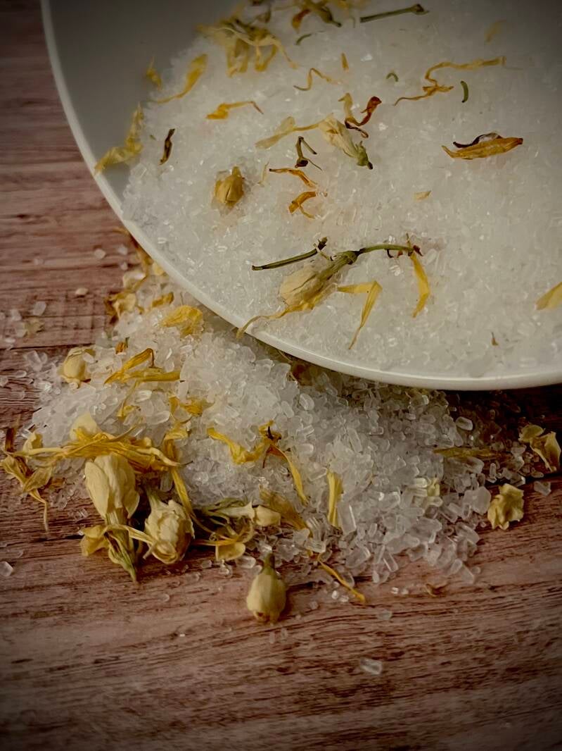 Bath Salts are mineral Rich blends designed to transform a simple bath into a restorative ritual. made with ingredients like Epsom salts and infused with essential oils and botanicals to engage your senses, relax tired muscles and soften your skin. Calming the mind , grounding the body and inviting a moment of stillness and self care. available in four beautiful scents. Eucalyptus Mint, rose, jasmine and lavender.